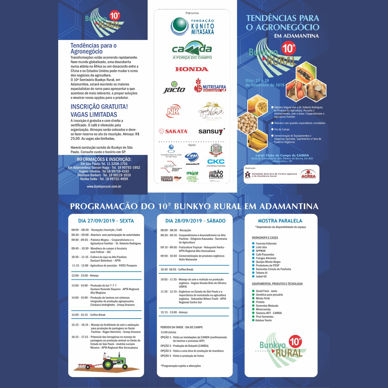 “Tendências para o Agronegócio em Adamantina” é o tema do Bunkyo Rural, que comemora sua décima edição. Sendo realizado a cada ano em uma localidade diferente, a cidade foi escolhida a pedido da comunidade local, representada pela Associação Cultural, Recreativa e Esportiva de Adamantina, pelo prefeito de Adamantina, Márcio Cardim e com a parceria da CAMDA(Cooperativa Agrícola Mista de Adamantina).