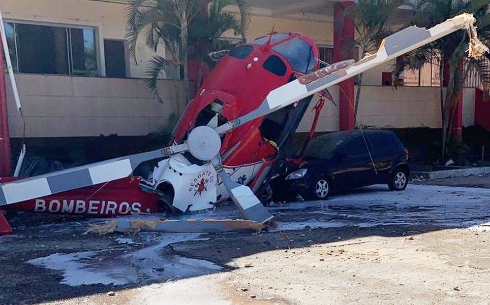 Um helicóptero do Corpo de Bombeiros caiu, na manhã desta quinta-feira (30), no Distrito Federal. O acidente foi ao lado de uma faculdade, em Vicente Pires. A aeronave de resgate, com cinco ocupantes, atingiu um carro que estava estacionado no local.