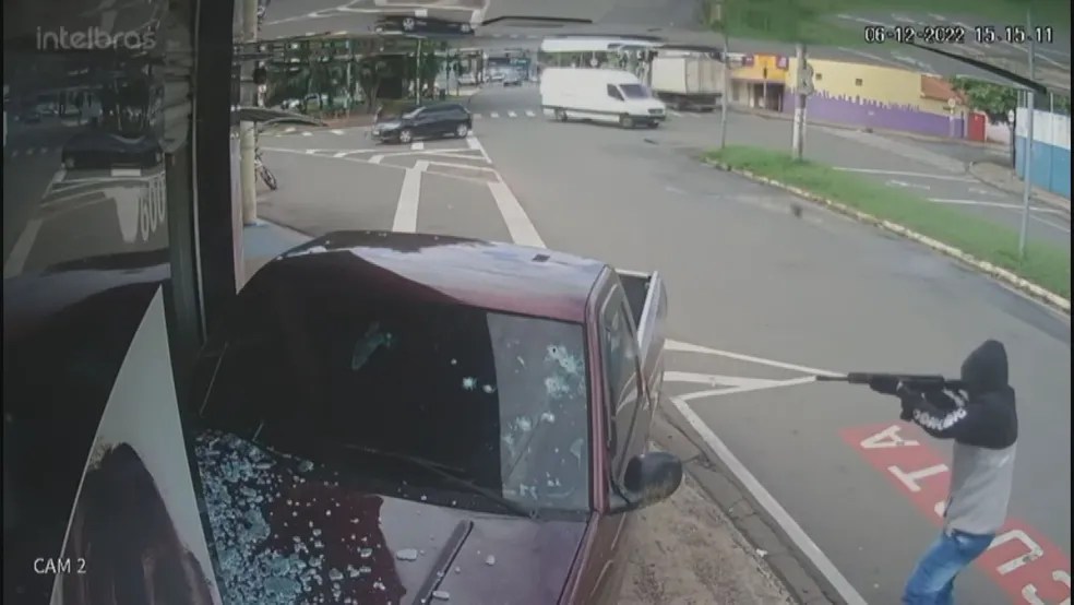 Um dos homens que estava no carro foi até a caminhonete e fez dezenas de disparos de fuzil contra o veículo. Depois, ele abriu a porta da caminhonete e efetuou mais disparos – dessa vez de pistola – a queima roupa.
