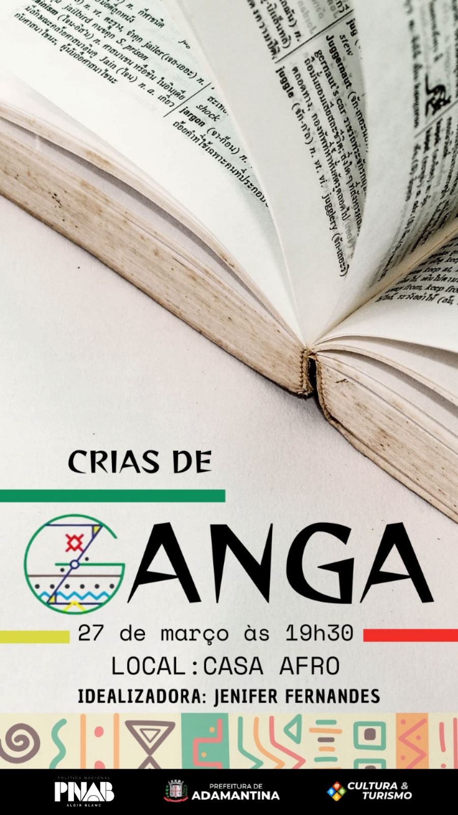 A agenda cultural desta última semana de março tem início nesta quinta-feira (27), com o grupo “Crias de Ganga”. O encontro acontecerá a partir das 19h30 na Casa Afro Brasil em Adamantina.