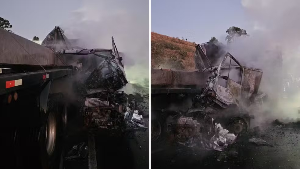 Segundo a concessionária que administra o trecho, o caminhão bateu na traseira da carreta. Após o impacto, um dos veículos pegou fogo.